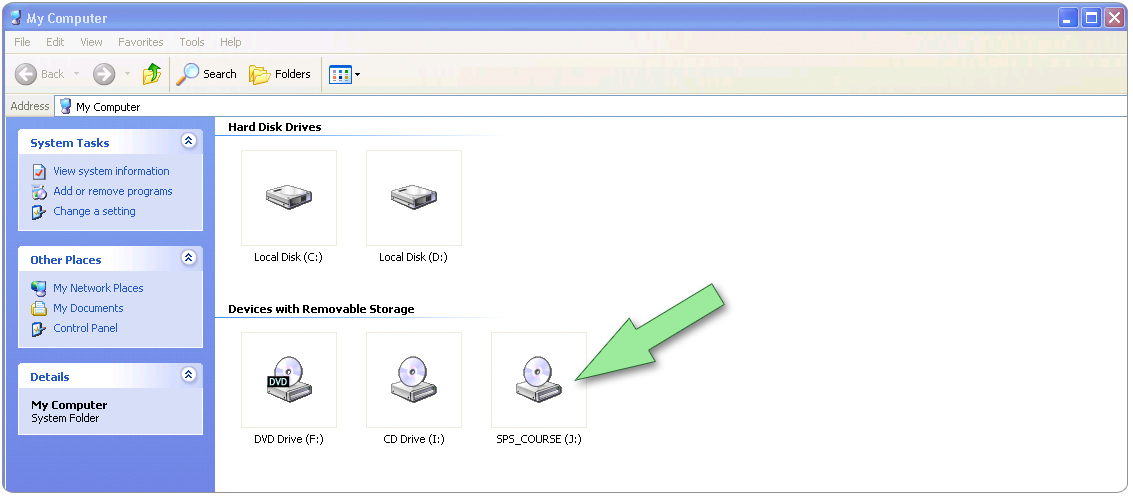 • Go to “My Computer” and double click on the volume named “SPS_COURSE”.